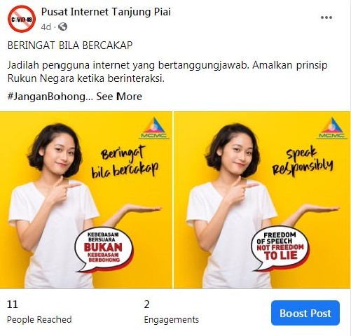 - Jangan kongsi pembohongan, mempromosikan portal sebenarnya.my dan mengingatkan kepada rakyat Malaysia bahawa membuat dan menyebarkan kandungan palsu atau tidak benar adalah tingkah laku jelik yang tidak boleh diterima.