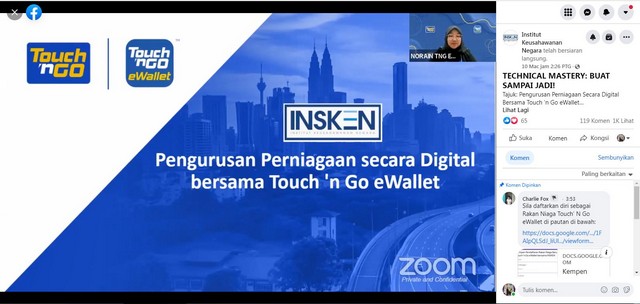 Sesi Perkongsian Daripada FB INSKEN Mengenai Pengurusan Perniagaan Secara Digital Bersama Touch’n Go eWallet
