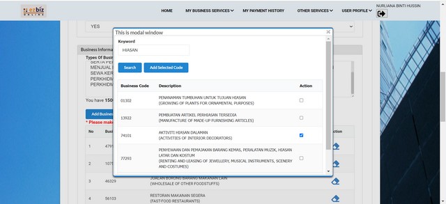 Puan Nurliana juga perlu menjalani sesi janji temu menggunakan panggilan video secara Whatsapp dengan perlu mengemukakan butiran peribadi seperti kad pengenalan dan nama emel. Setelah selesai menjalani panggilan video janji temu, maka Puan Nurliana telah mendaftarkan perniagaan beliau menggunakan nama NH DKampung Enterprise di portal Ezbiz. Pendaftaran ini berlangsung selama satu jam bermula jam 11.00 dan berakhir pada jam 12.00 tengah hari.