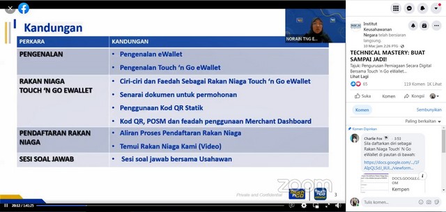 Sesi Perkongsian Daripada FB INSKEN Mengenai Pengurusan Perniagaan Secara Digital Bersama Touch’n Go eWallet